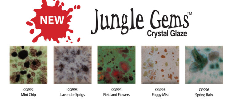 De jungle gems zijn “kristal”glazuren van Mayco zijn glanzende glazuren met stukjes glasfritten. Deze stukjes smelten tijdens het stookproces.