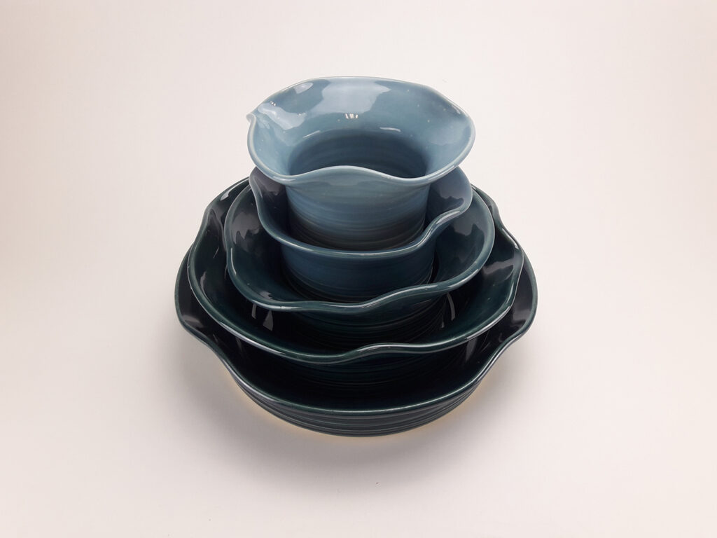Bij De Pottenbakster draait alles om het creëren van keramiek die zowel functioneel als artistiek is. Elk stuk wordt met de hand gevormd – aan de draaischijf of opgebouwd uit klei – en draagt het geduldige proces in zich: van het eerste contact met de klei tot de laatste glazuurlaag die het werk zijn karakter en uitstraling geeft.