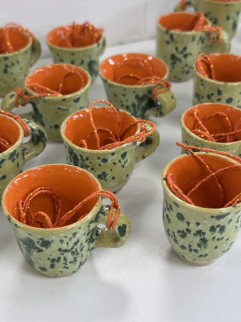 > In het atelier: Bezoek onze pottenbakkerij op afspraak en bewonder de nieuwste creaties die we maken. Hier kun je het volledige proces van dichtbij ervaren, van de eerste draaiing tot het glazuren.