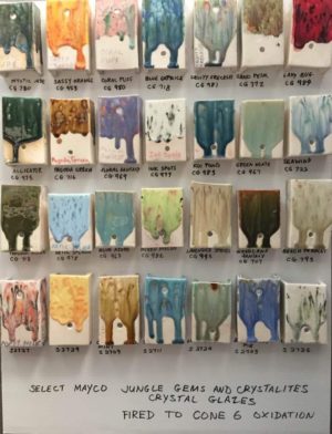 Fong Choo heeft een aantal jungle gems en crystalites van maycocolors getest op cone6 (1200/1220 graden) en dit met ons gedeeld. Super bedankt Fong Choo!!